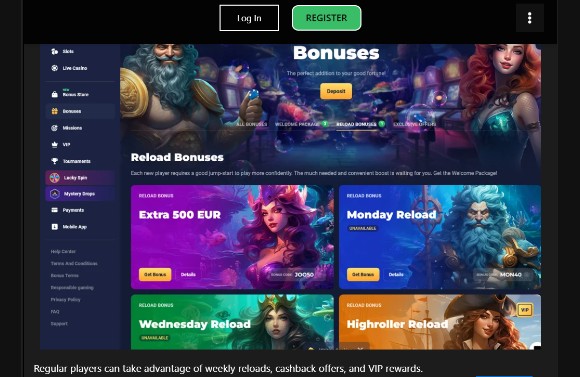 Regular players can take advantage of weekly reloads, cashback offers, and VIP rewards.